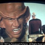 Media Archives: Synopsis: The U.S.S. Enterprise is rendered powerless above an unknown and mysterious planet during a mission to repossess a stolen T-9 energy converter from Ferengi culprits. Captain Picard, believing the Ferengi bandits initiated this withdrawal of energy, announces the U.S.S. Enterprise‘s willingness to resolve the situation. However, the Ferengi vessel reports that it faces the same predicament. In an effort to discover who or what has tampered with their energy supplies, away teams from both the Ferengi and U.S.S. Enterprise starships beam down to investigate the desolate planet. After a confrontation with the Ferengi enemy, a mysterious being known only as Portal, guardian of the Tkon Empire, materializes before both away teams inquiring, “Who will meet the challenge?” Portal, disenchanted with the Ferengi’s barbaric and warlike responses to his inquisition, is intrigued by Commander Riker’s wisdom. Once Riker passes several of Portal’s intellectual “tests,” power is again restored to the respective starships.