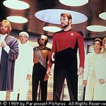 Media Archives: Synopsis: The U.S.S. Enterprise is unexpectedly diverted to the Ramatis star system to transport a famous mediator named Riva to the site of a bitter planetary conflict on Solais V. To the surprise of the away team, headed by Captain Picard, it soon becomes apparent that Riva is deaf. Although he can understand what the crew is saying by reading their lips, his only way of communicating is through the Chorus, a group of three people who not only possess a distinctive aspect of Riva’s personality, but can read the mediator’s thoughts telepathically and translate them into words. En route to Solais V, Troi and Riva develop a strong mutual affection. Left alone together, Riva communicates his loving feelings toward Troi using thoughts and crude sign language. Arriving at the war-torn planet, Riva, his Chorus and the away team prepare to meet with the leaders of the centuries-old dispute. But when the combatants face each other to begin the peace talks, a dissident soldier opens fire with his weapon, killing Riva’s Chorus. The away team and Riva are quickly beamed back aboard the U.S.S. Enterprise before more harm is done. Faced with the loss of his Chorus, Riva becomes withdrawn and loses all confidence in himself. Although Data learns several forms of sign language and is able to communicate the deaf man’s thoughts, Riva refuses to return to the planet where his friends were so needlessly killed. Luckily, Troi is able to persuade Riva that he can turn his disadvantage into an advantage. Back on Solais V, Riva dismisses Data as his translator, announcing that he plans to teach the warring leaders sign language so that they can communicate with him and, in turn, with each other.